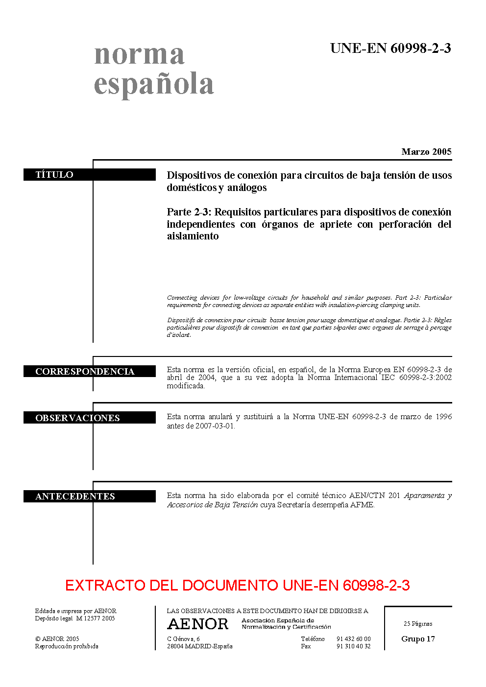 | Publisher | Asociacion Espanola de Normalizacion y Certificacion (AENOR) |