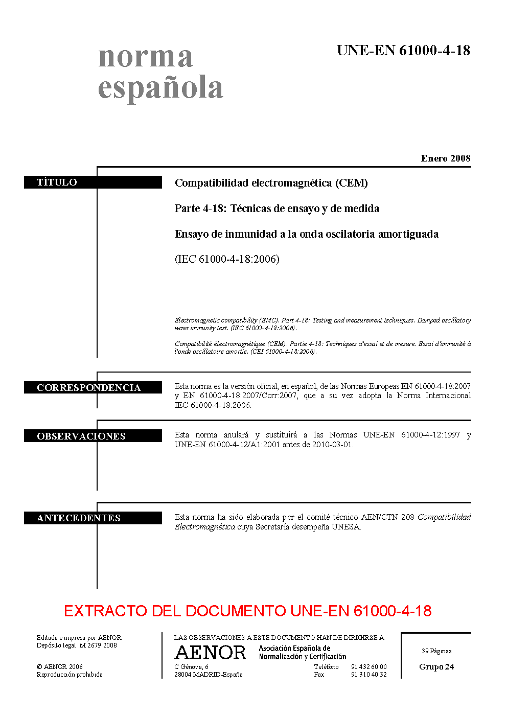UNE-EN 61000-4-18:2008