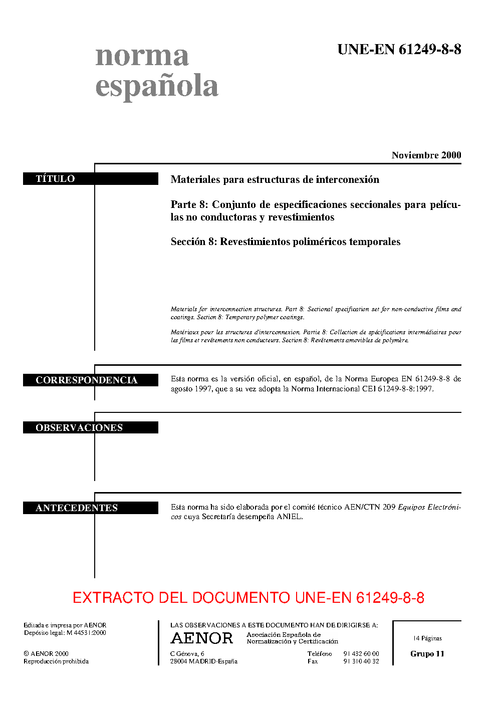 UNE-EN 61249-8-8:2000
