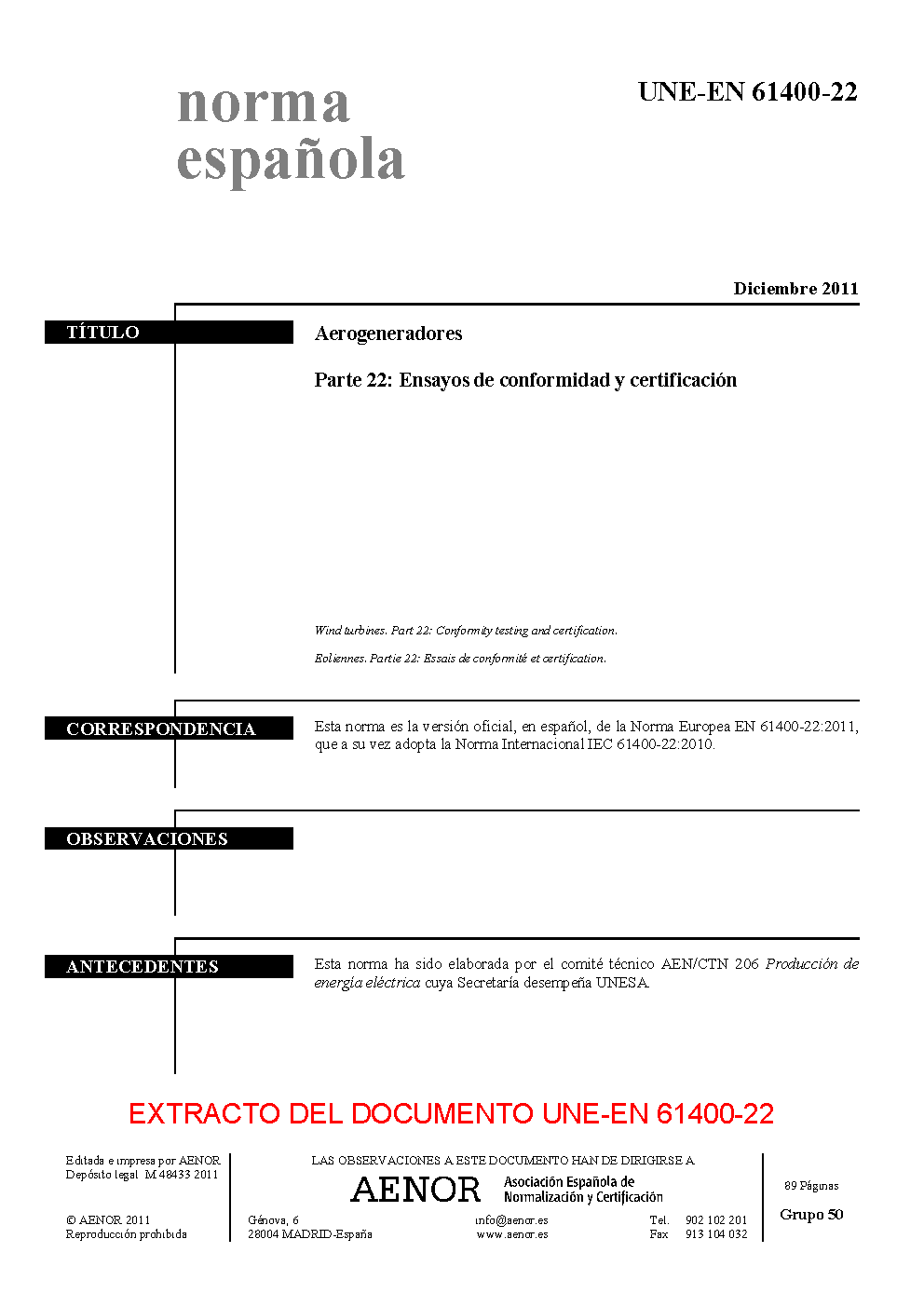 | Publisher | Asociacion Espanola de Normalizacion y Certificacion (AENOR) |