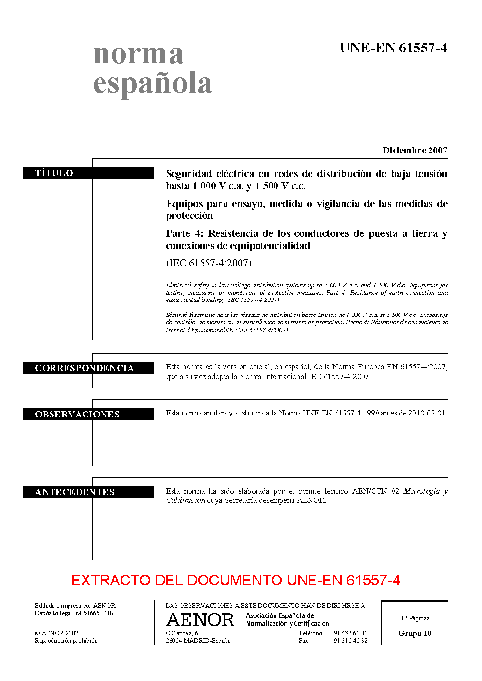 UNE-EN 61557-4:2007