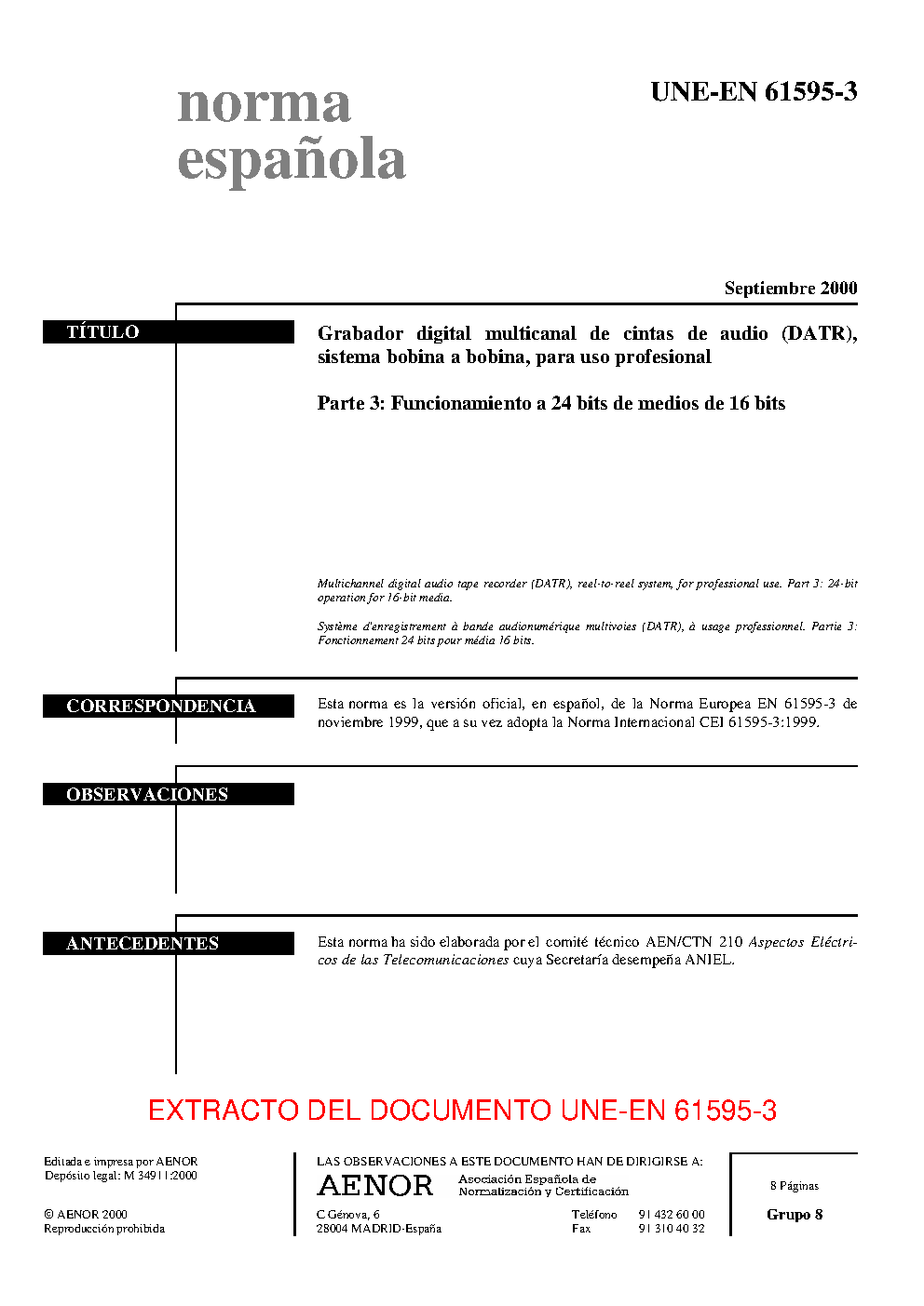 | Publisher | Asociacion Espanola de Normalizacion y Certificacion (AENOR) |