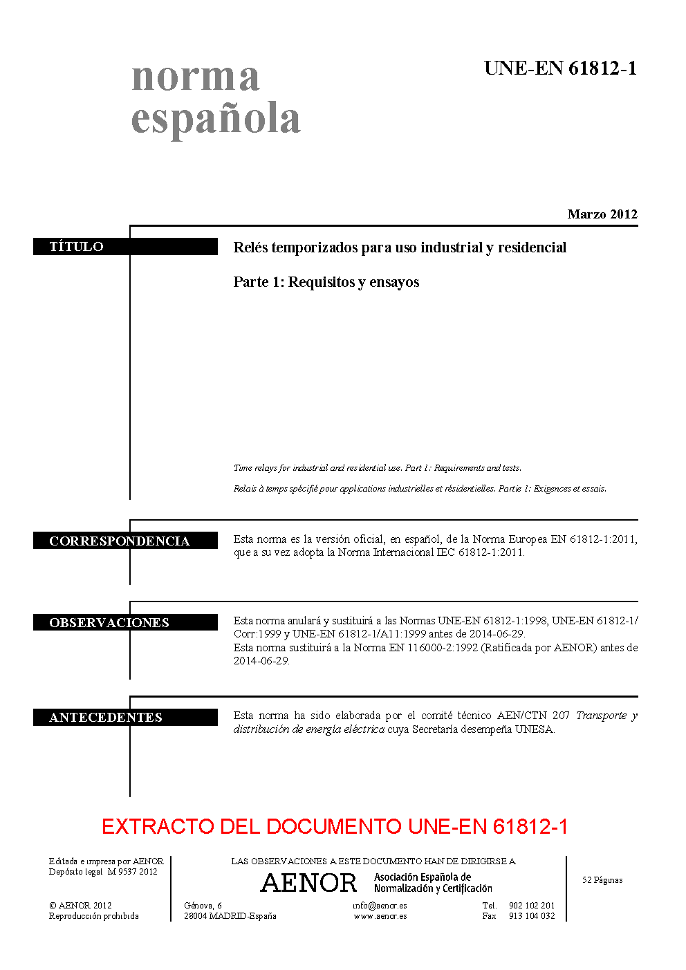| Publisher | Asociacion Espanola de Normalizacion y Certificacion (AENOR) |