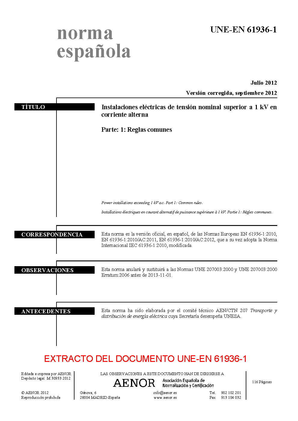 UNE-EN 61936-1:2012/AC:2013
