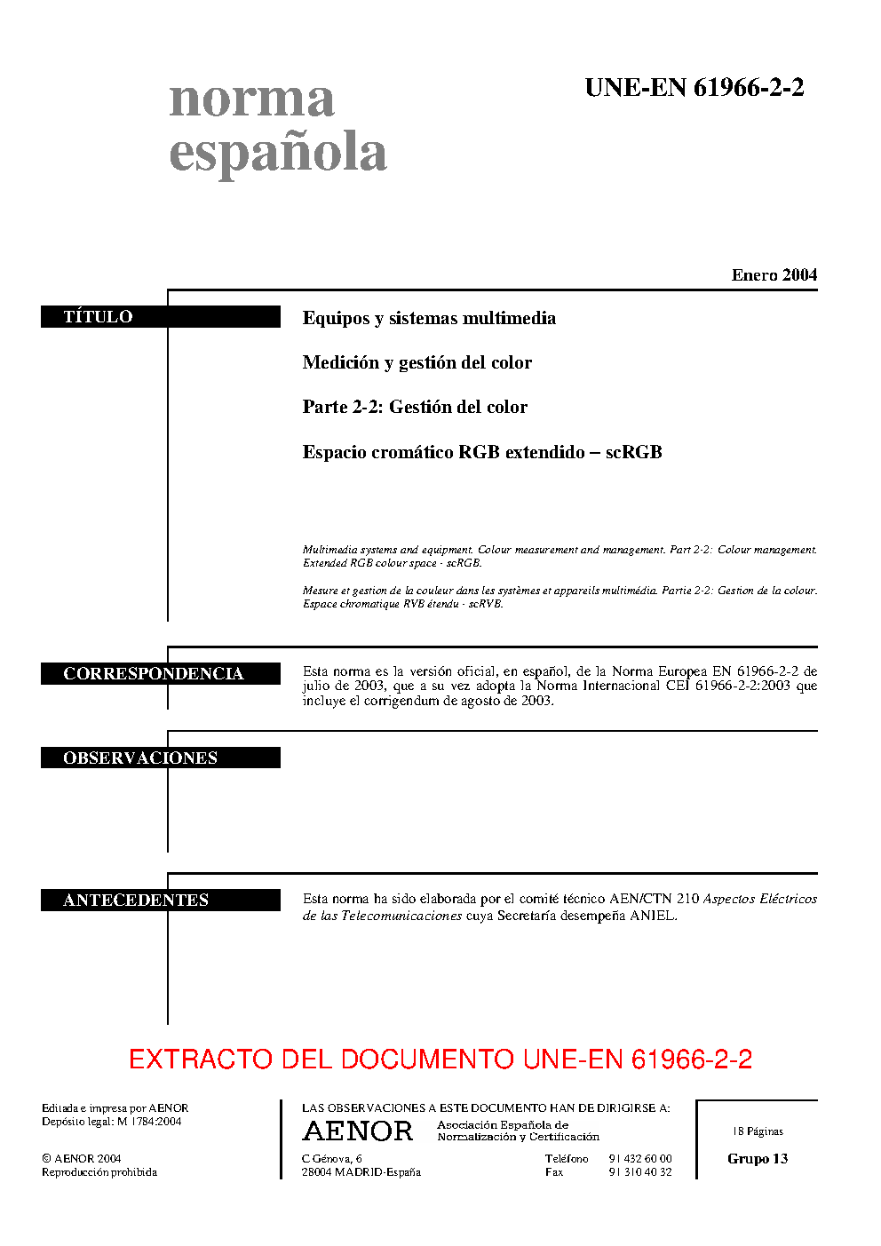 | Publisher | Asociacion Espanola de Normalizacion y Certificacion (AENOR) |