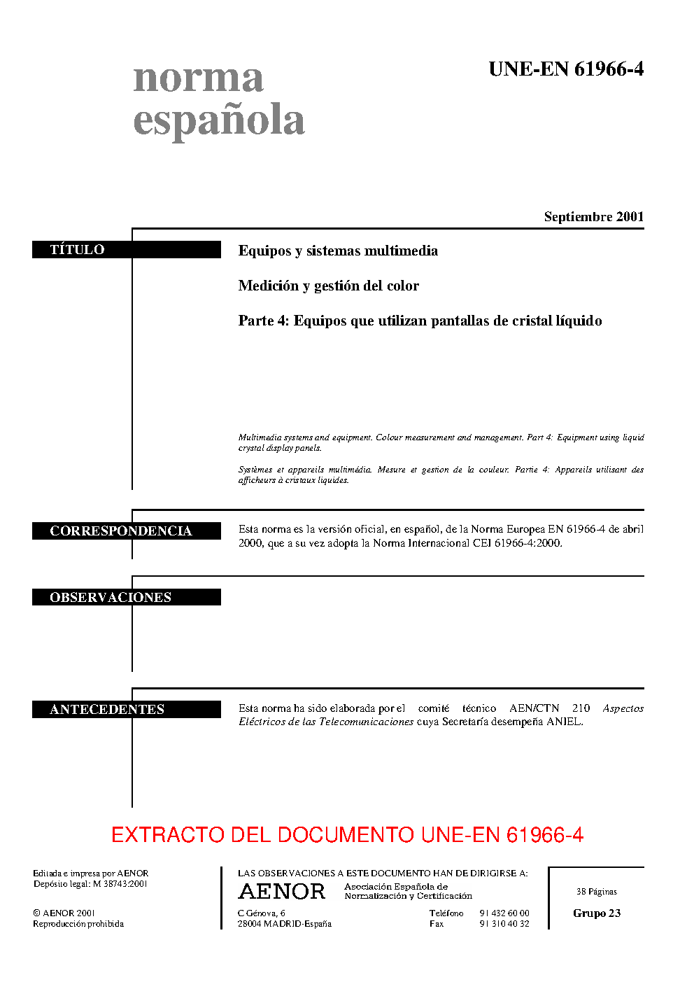 UNE-EN 61966-4:2001