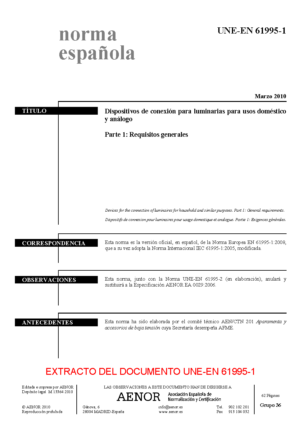 | Publisher | Asociacion Espanola de Normalizacion y Certificacion (AENOR) |