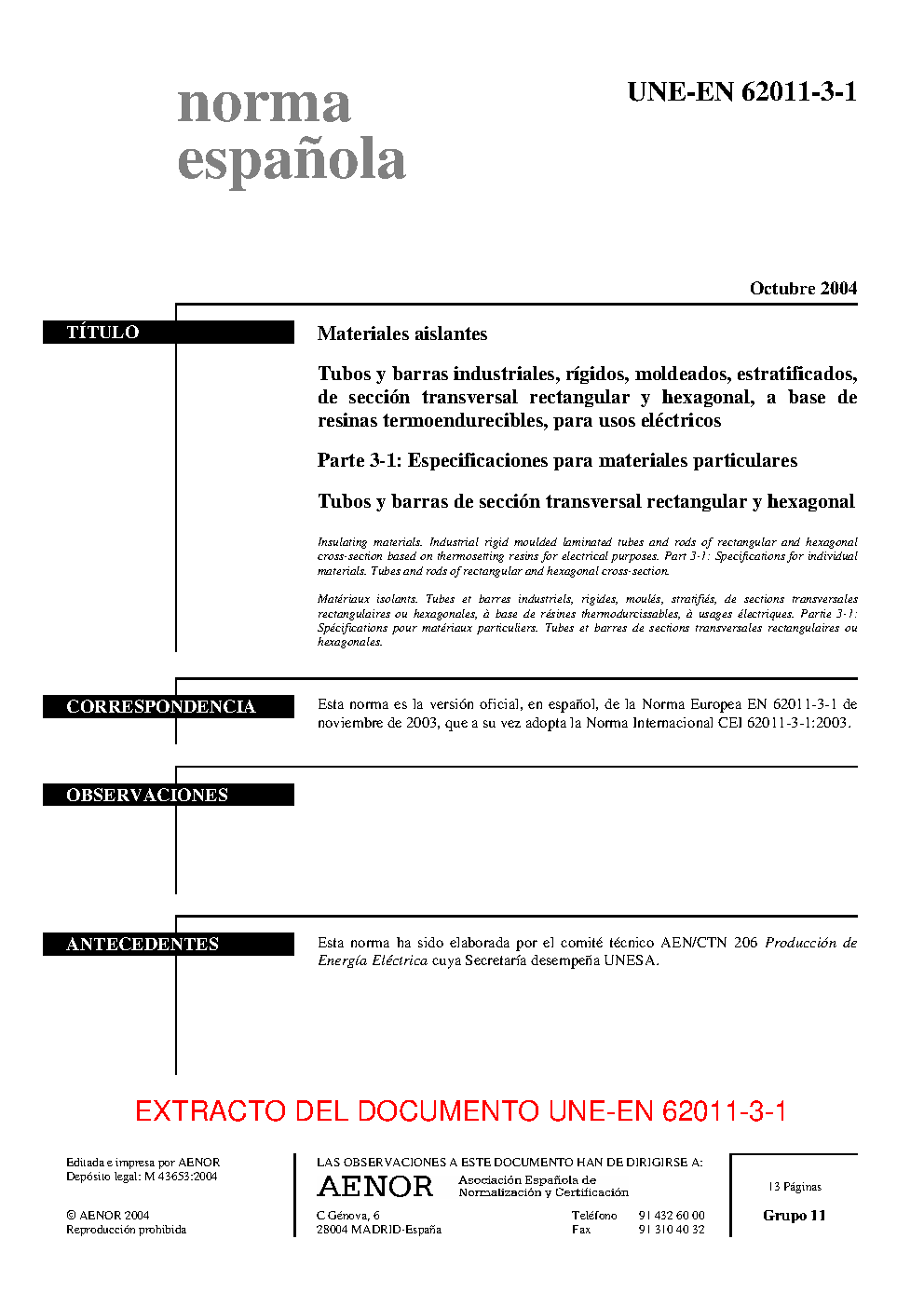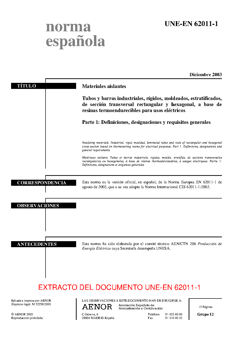 | Publisher | Asociacion Espanola de Normalizacion y Certificacion (AENOR) |