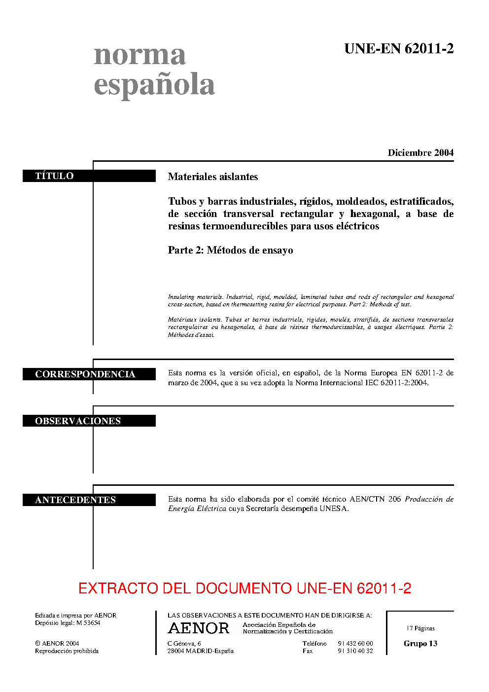 | Publisher | Asociacion Espanola de Normalizacion y Certificacion (AENOR) |