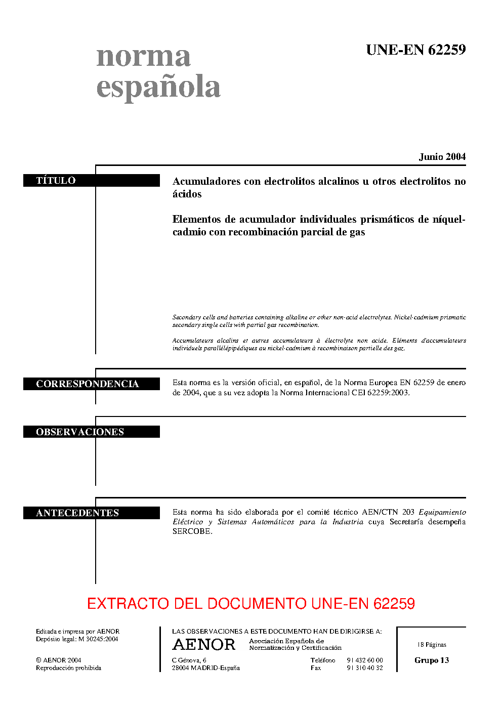 UNE-EN 62259:2004