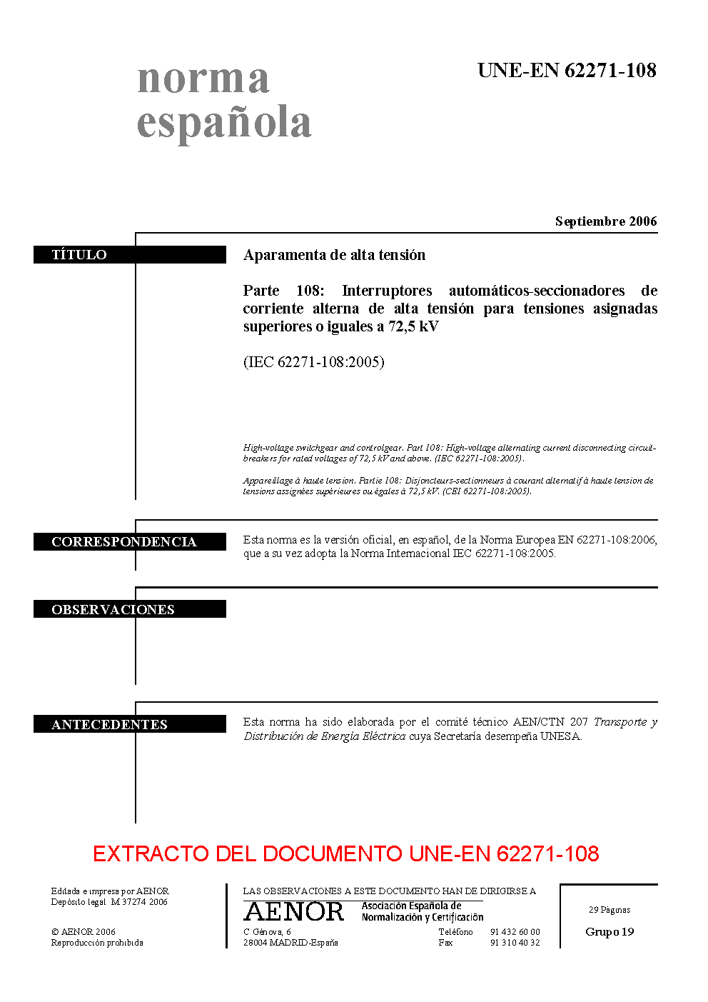 UNE-EN 62271-108:2006