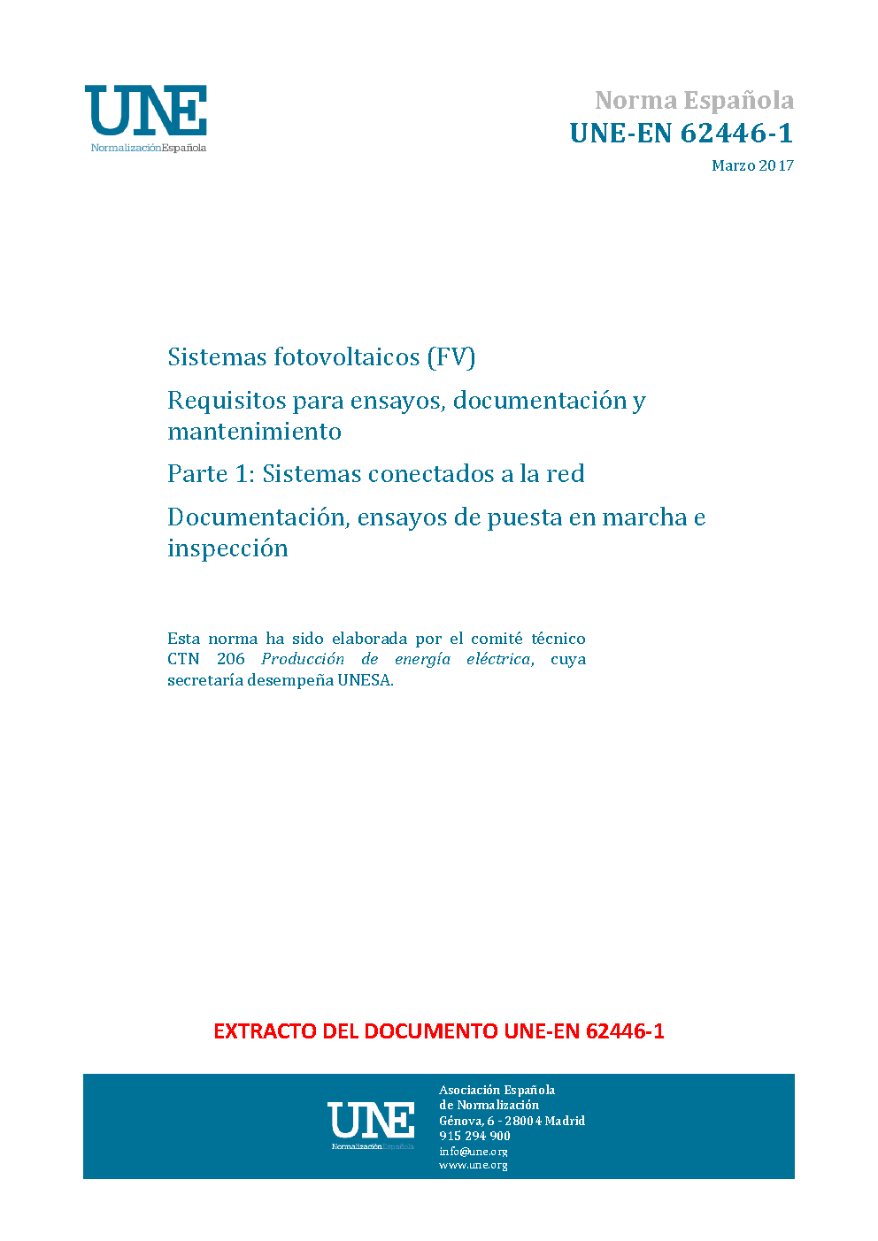 Photovoltaic (PV) systems - Requirements for testing, documentation and maintenance - Part 1: Grid connected systems - Documentation, commissioning tests and inspection
