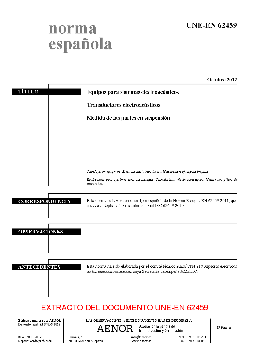 | Publisher | Asociacion Espanola de Normalizacion y Certificacion (AENOR) |