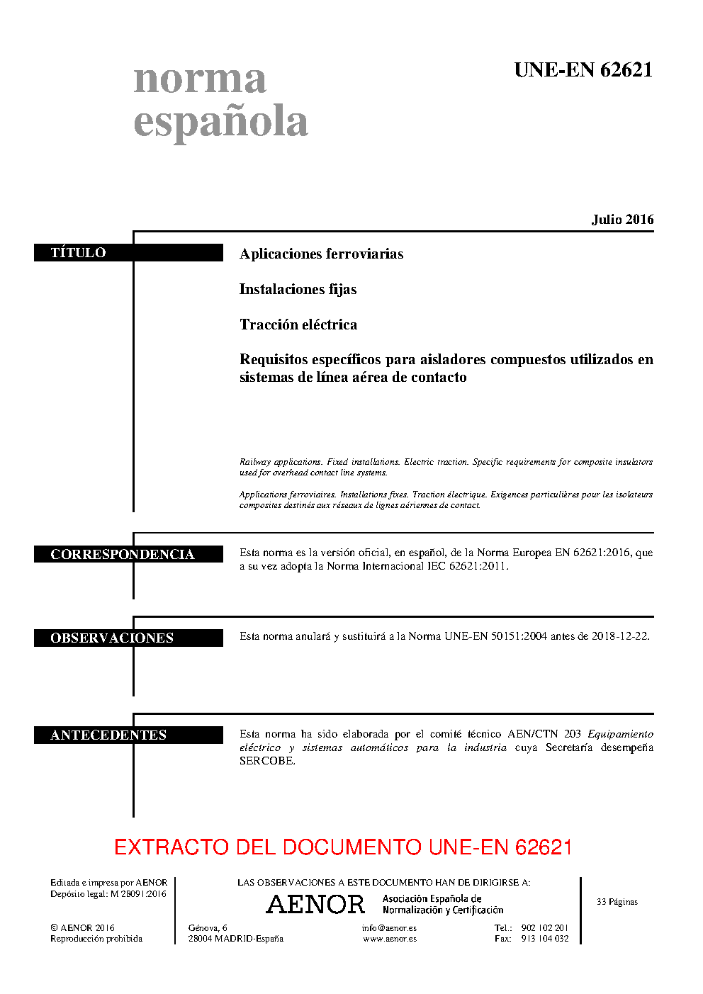 | Publisher | Asociacion Espanola de Normalizacion y Certificacion (AENOR) |