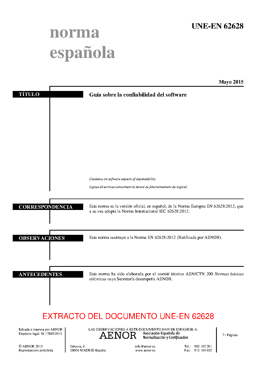 | Publisher | Asociacion Espanola de Normalizacion y Certificacion (AENOR) |