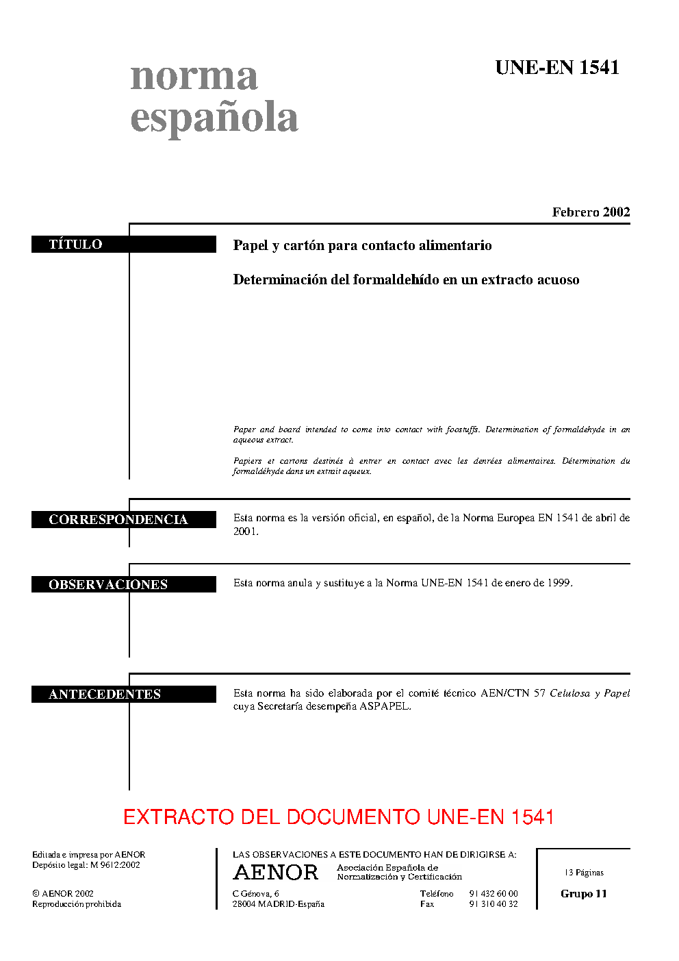 | Publisher | Asociacion Espanola de Normalizacion y Certificacion (AENOR) |