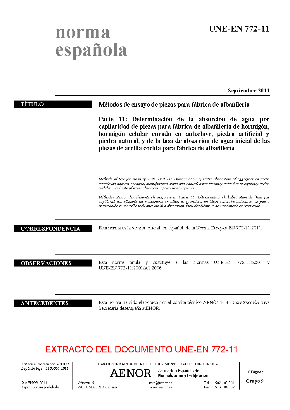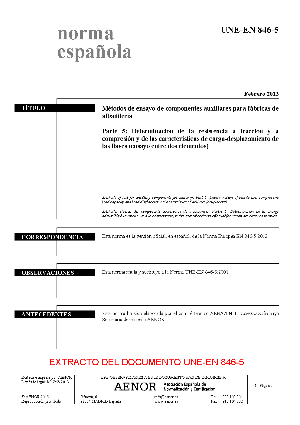 | Publisher | Asociacion Espanola de Normalizacion y Certificacion (AENOR) |