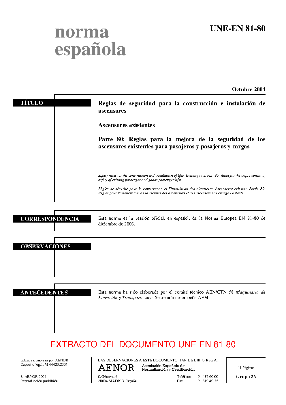 | Publisher | Asociacion Espanola de Normalizacion y Certificacion (AENOR) |