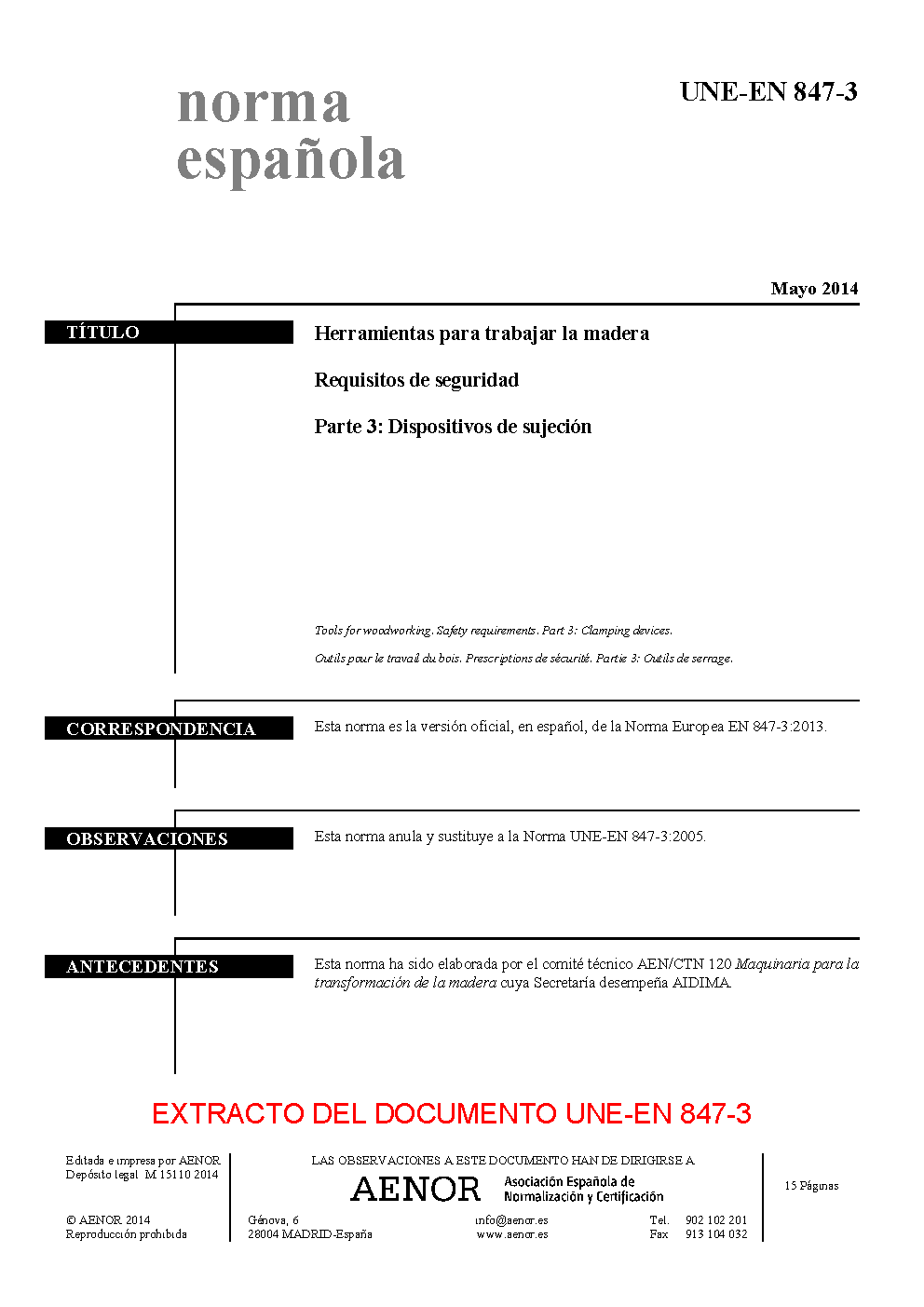 | Publisher | Asociacion Espanola de Normalizacion y Certificacion (AENOR) |