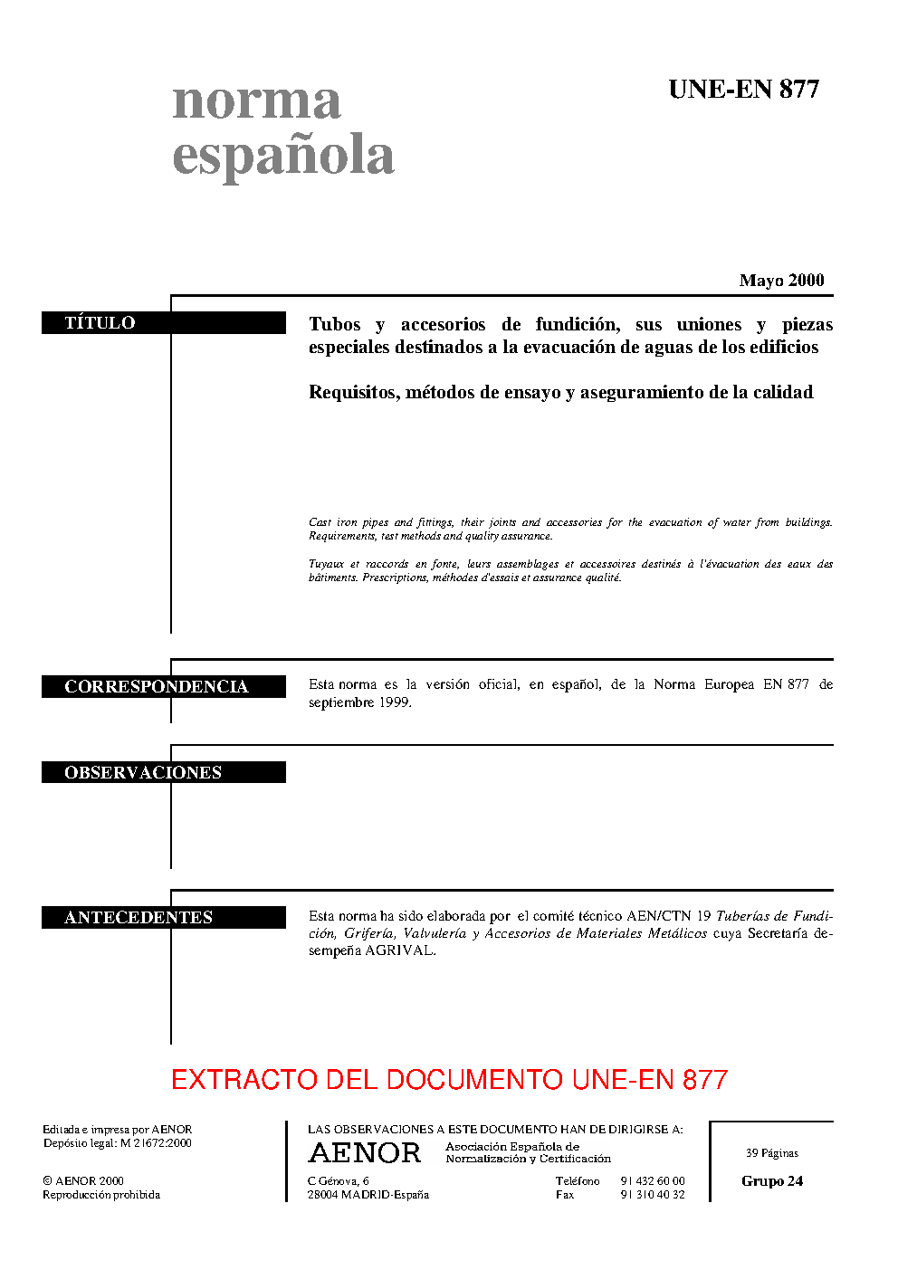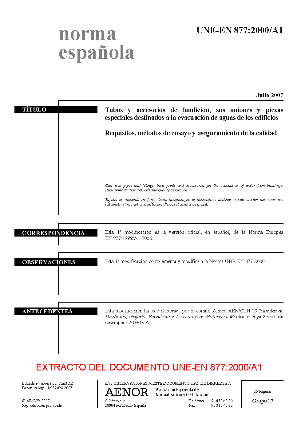 UNE-EN 877:2000/A1:2007/AC:2008