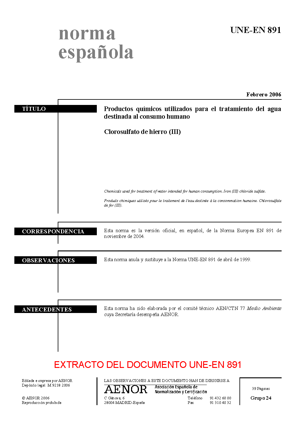 | Publisher | Asociacion Espanola de Normalizacion y Certificacion (AENOR) |