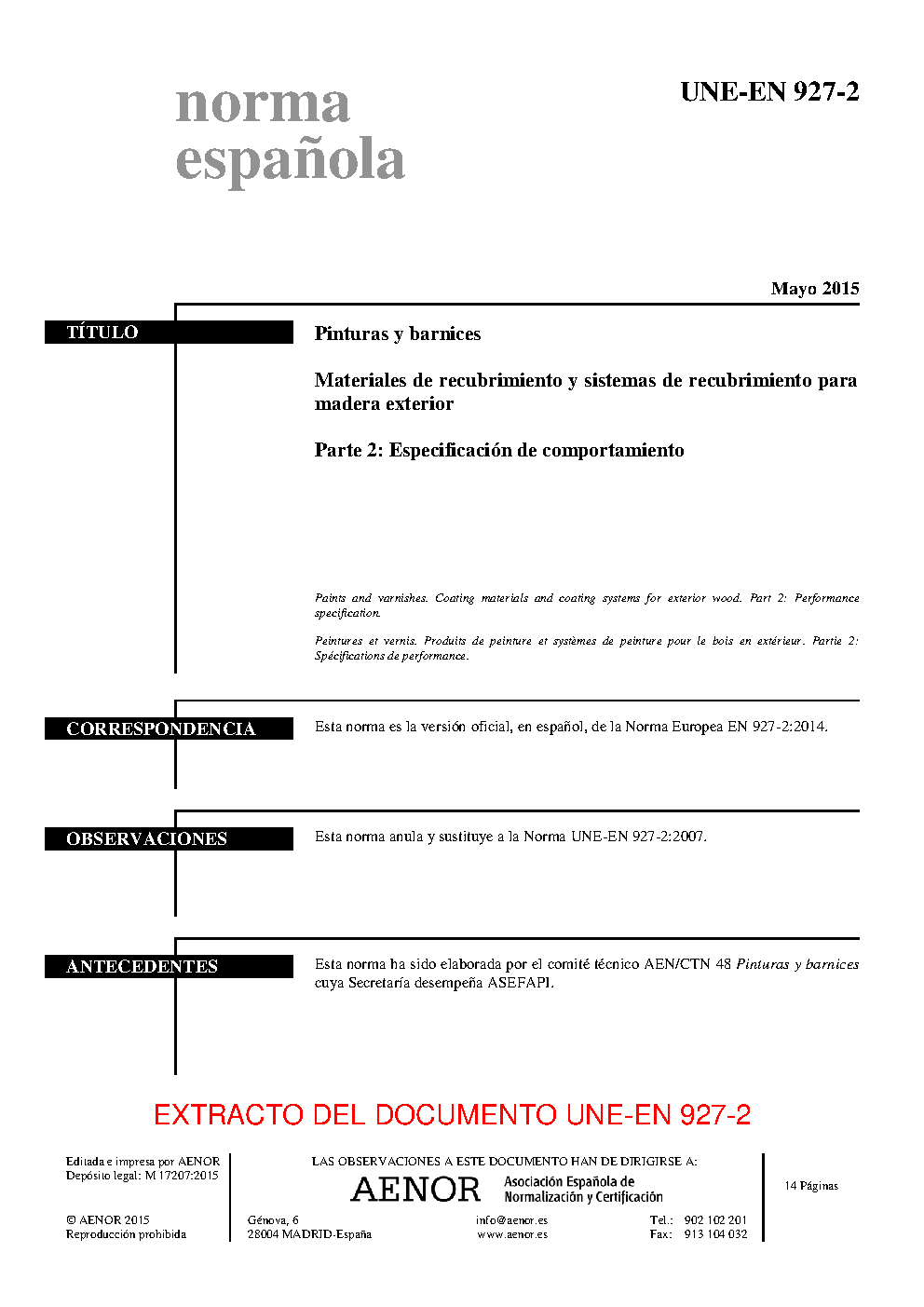 | Publisher | Asociacion Espanola de Normalizacion y Certificacion (AENOR) |