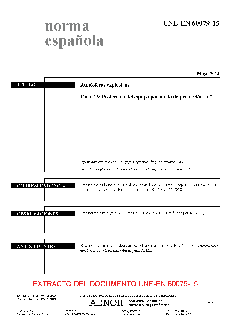| Publisher | Asociacion Espanola de Normalizacion y Certificacion (AENOR) |