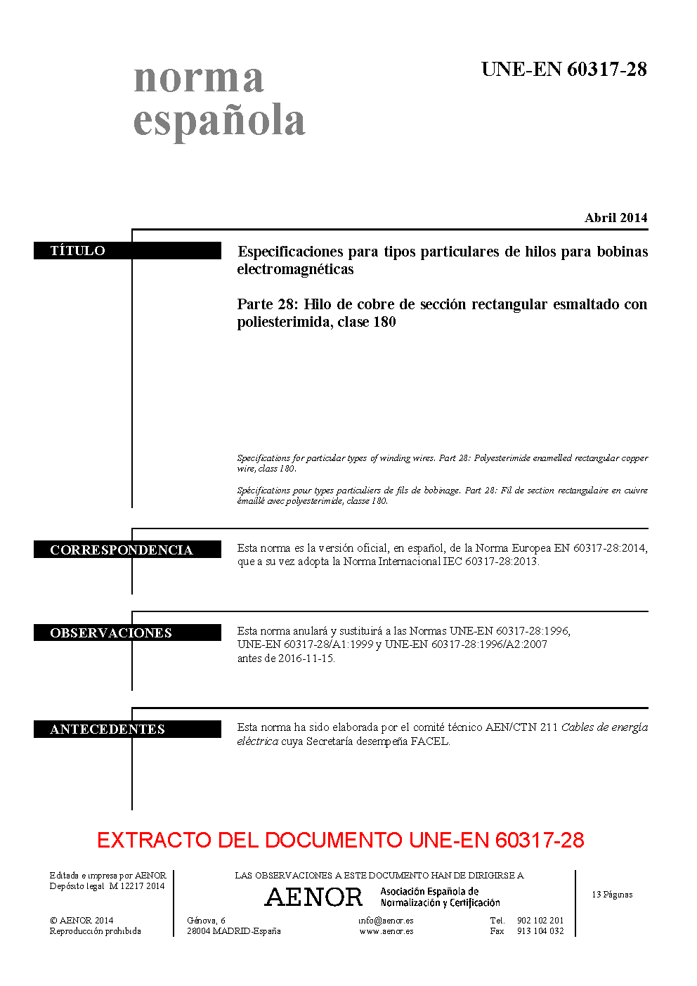 | Publisher | Asociacion Espanola de Normalizacion y Certificacion (AENOR) |