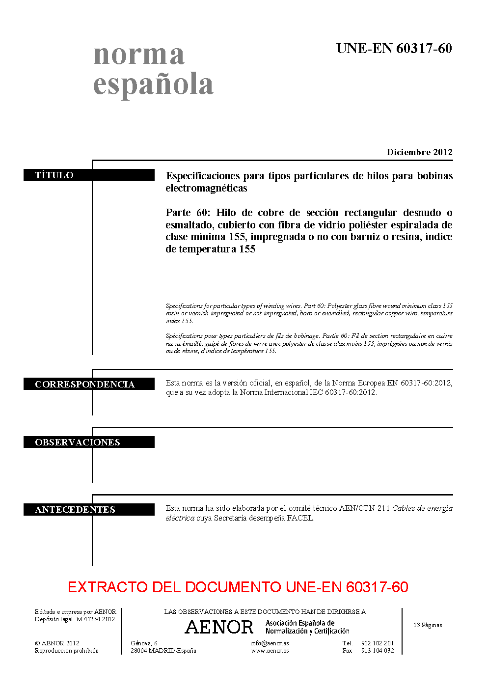 | Publisher | Asociacion Espanola de Normalizacion y Certificacion (AENOR) |