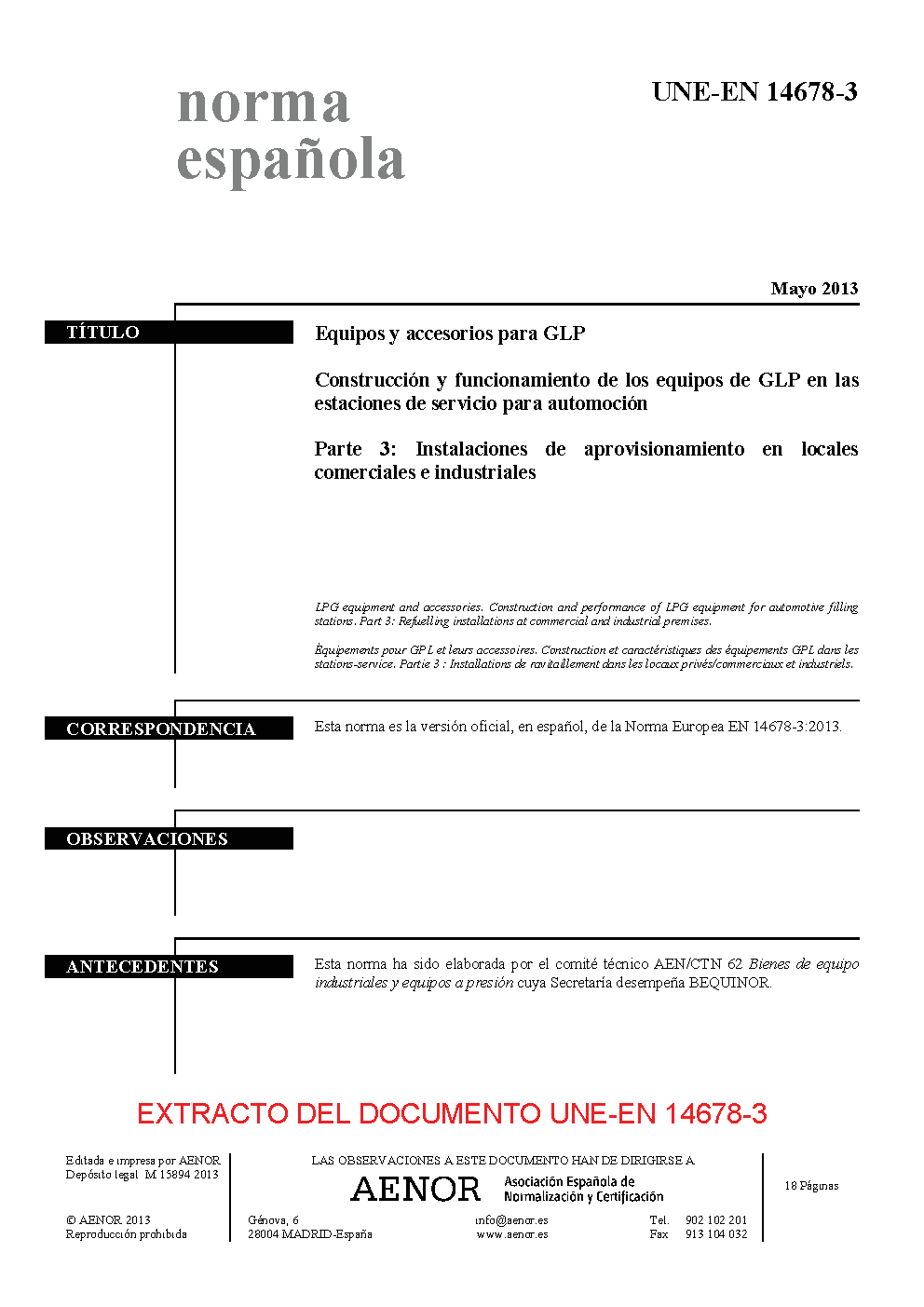 | Publisher | Asociacion Espanola de Normalizacion y Certificacion (AENOR) |