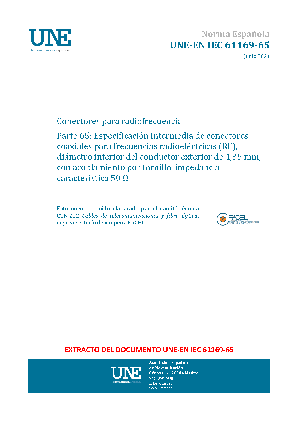 Radio-frequency connectors - Part 65: Sectional specification for RF coaxial connectors, 1,35 mm inner diameter of outer conductor, with screw-coupling, characteristic impedance 50 O