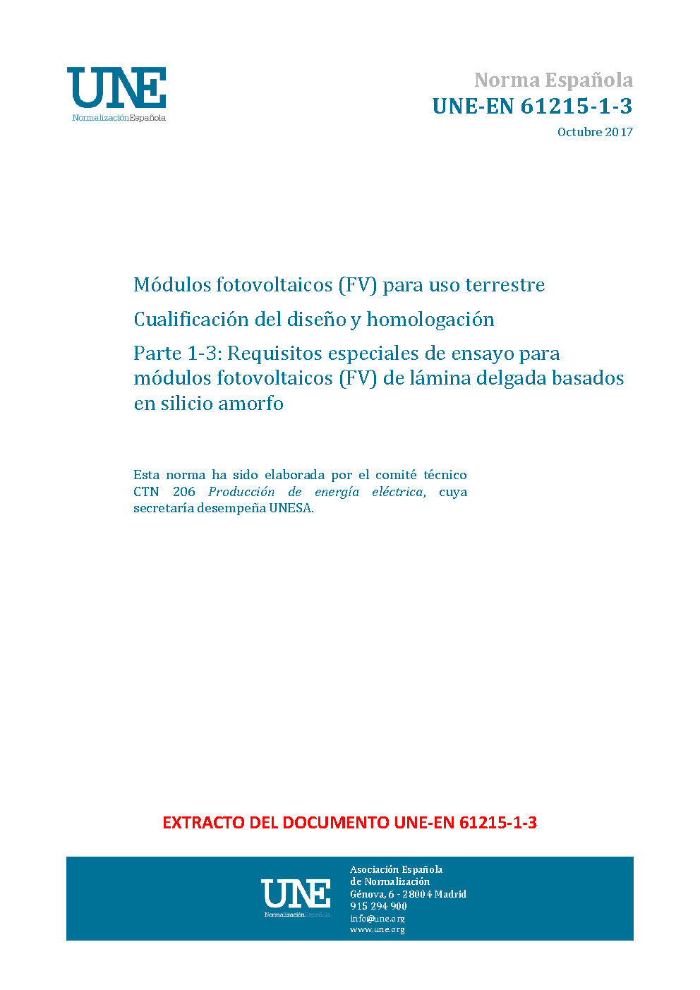 Terrestrial photovoltaic (PV) modules - Design qualification and type approval - Part 1-3: Special requirements for testing of thin-film amorphous silicon based photovoltaic (PV) modules