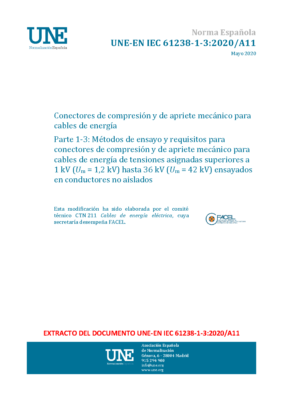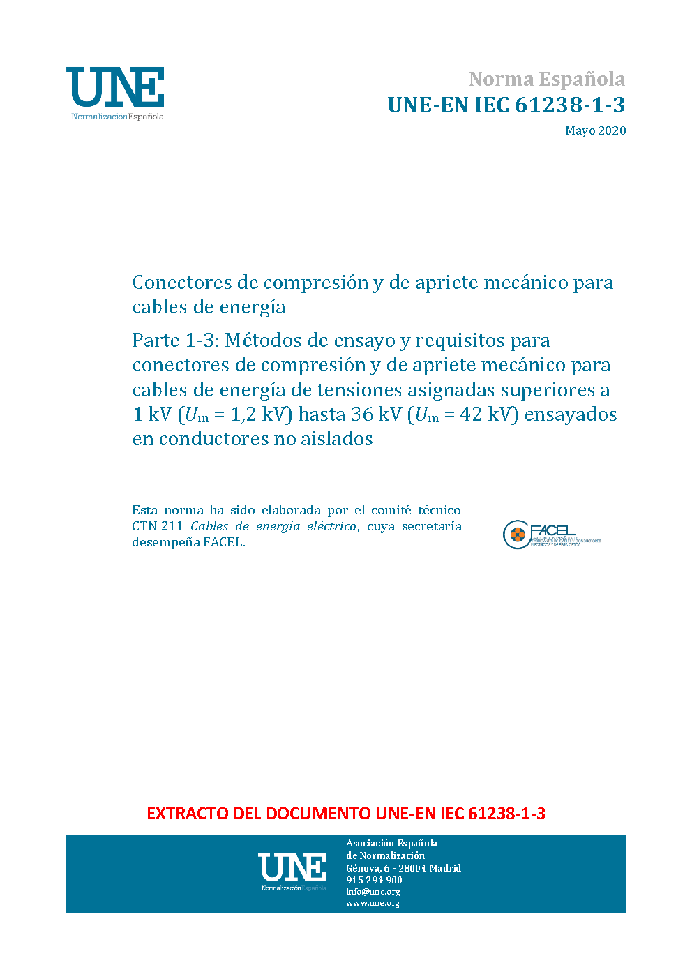 Compression and mechanical connectors for power cables - Part 1-3: Test methods and requirements for compression and mechanical connectors for power cables for rated voltages above 1 kV (Um = 1,2 kV) up to 36 kV (Um = 42 kV) tested on non-insulated conductors
