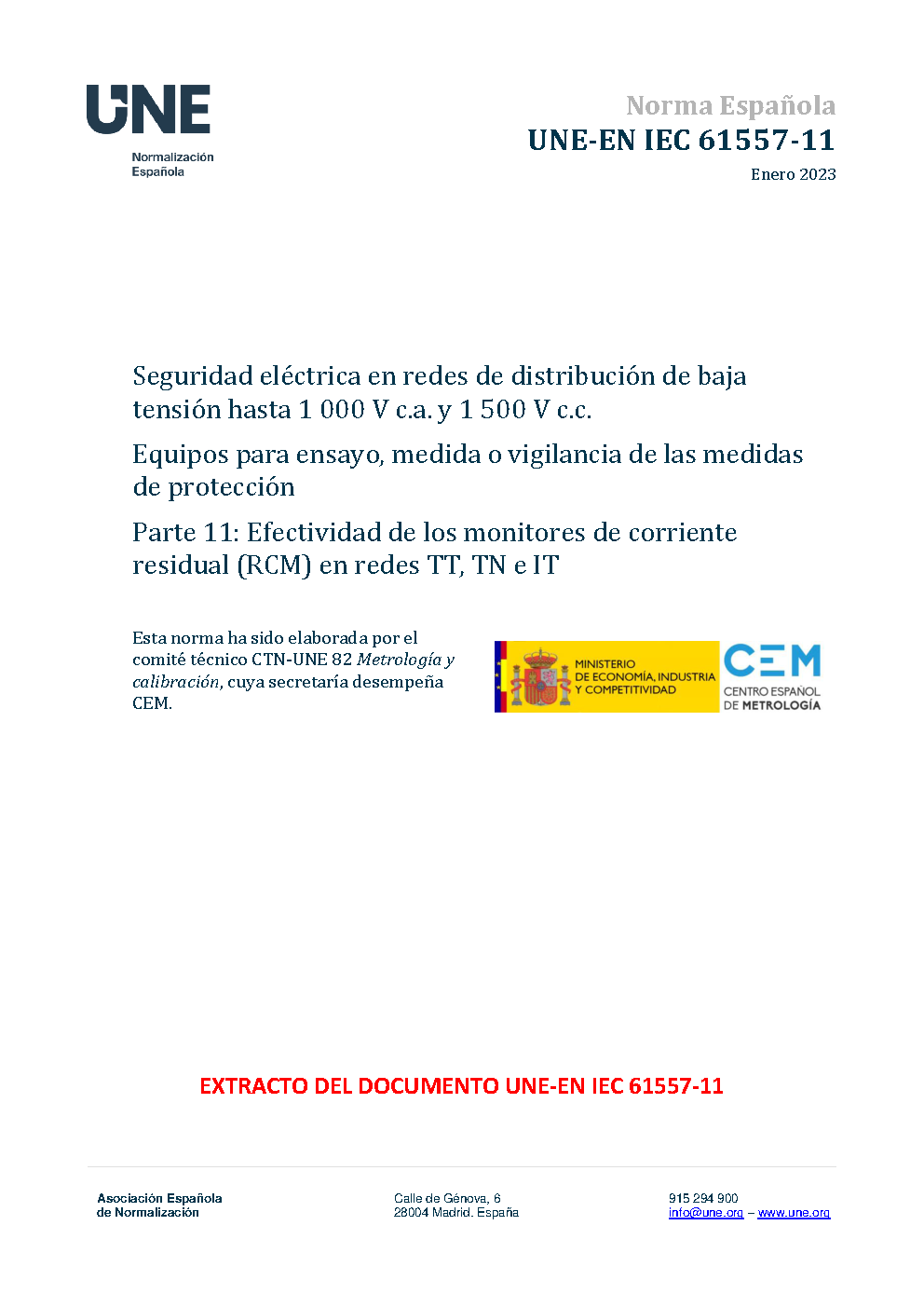 Electrical safety in low voltage distribution systems up to 1 000 V AC and 1 500 V DC - Equipment for testing, measuring or monitoring of protective measures - Part 11: Effectiveness of residual current monitors (RCM) in TT, TN and IT systems