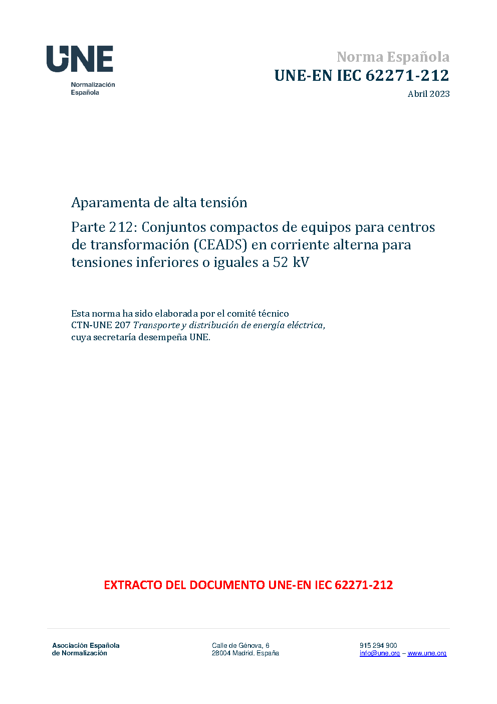 UNE-EN IEC 62271-212:2023