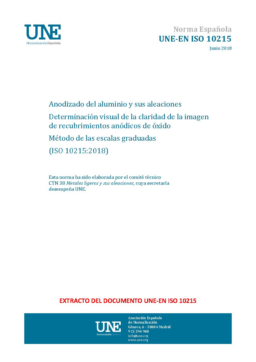 Anodizing of aluminium and its alloys - Visual determination of image clarity of anodic oxidation coatings - Chart scale method (ISO 10215:2018)