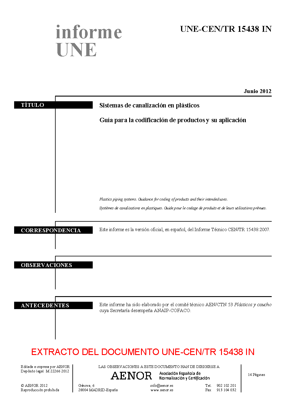 | Publisher | Asociacion Espanola de Normalizacion y Certificacion (AENOR) |