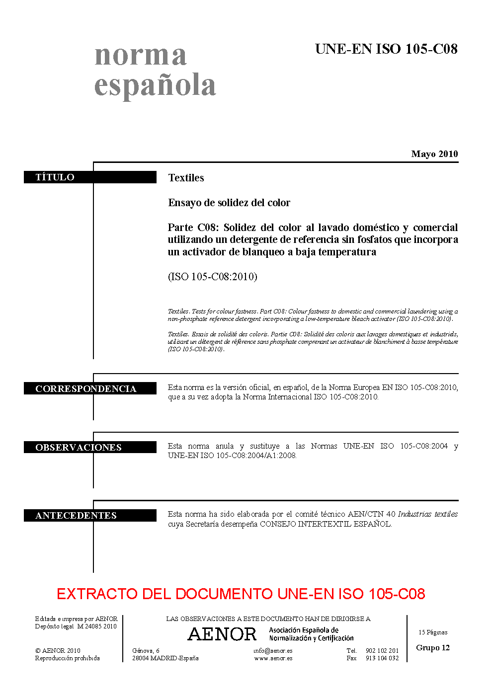 UNE-EN ISO 105-C08:2010