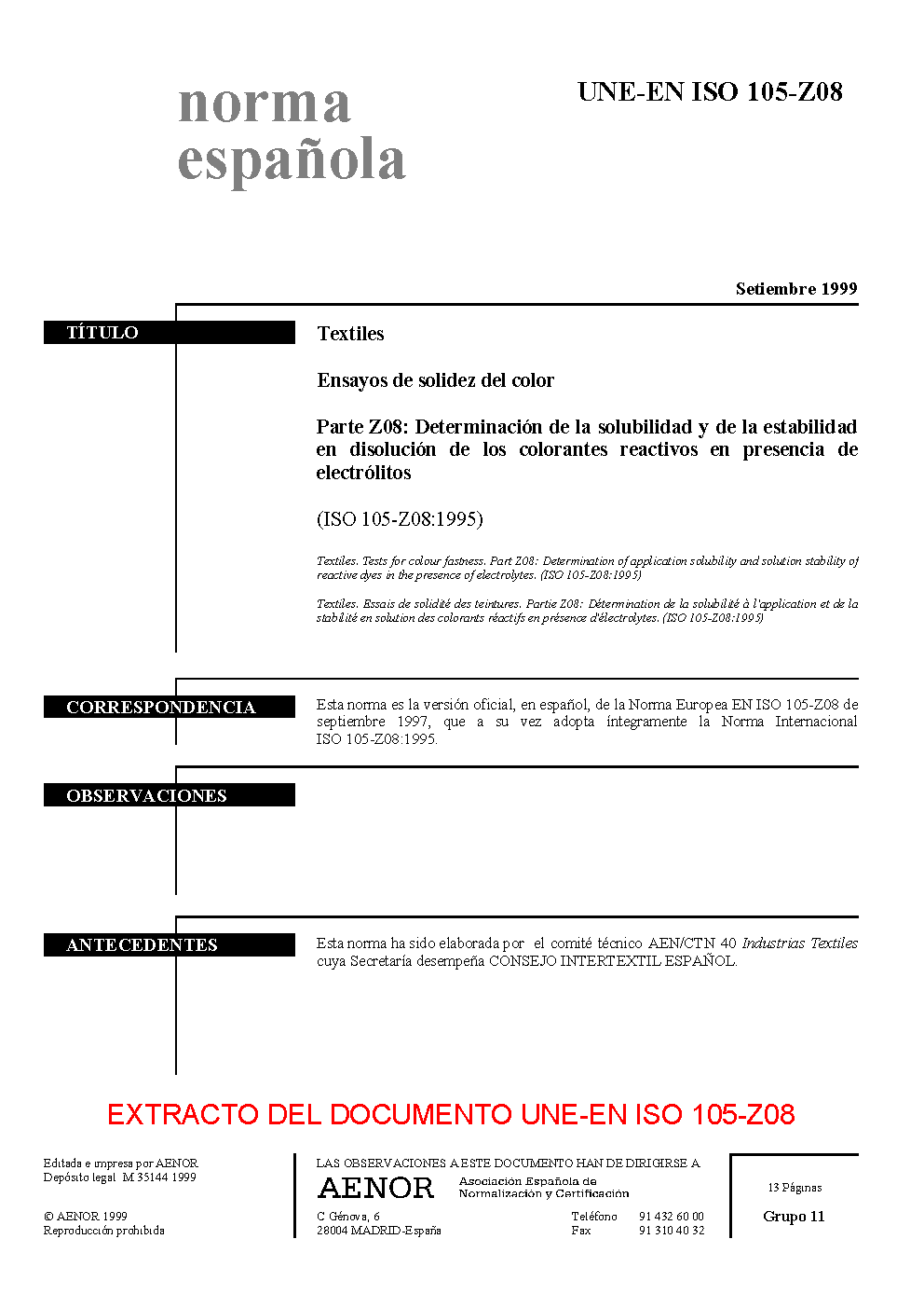 UNE-EN ISO 105-Z08:1999