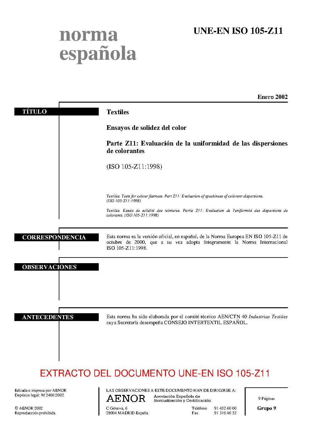 UNE-EN ISO 105-Z11:2002 (R2010)