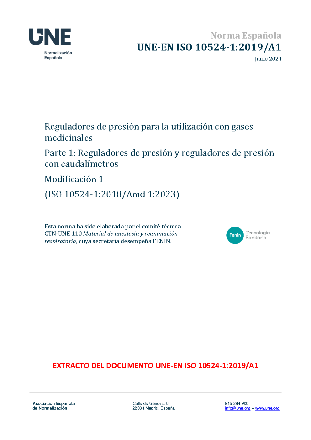 Pressure regulators for use with medical gases - Part 1: Pressure regulators and pressure regulators with flow-metering devices (ISO 10524-1:2018)