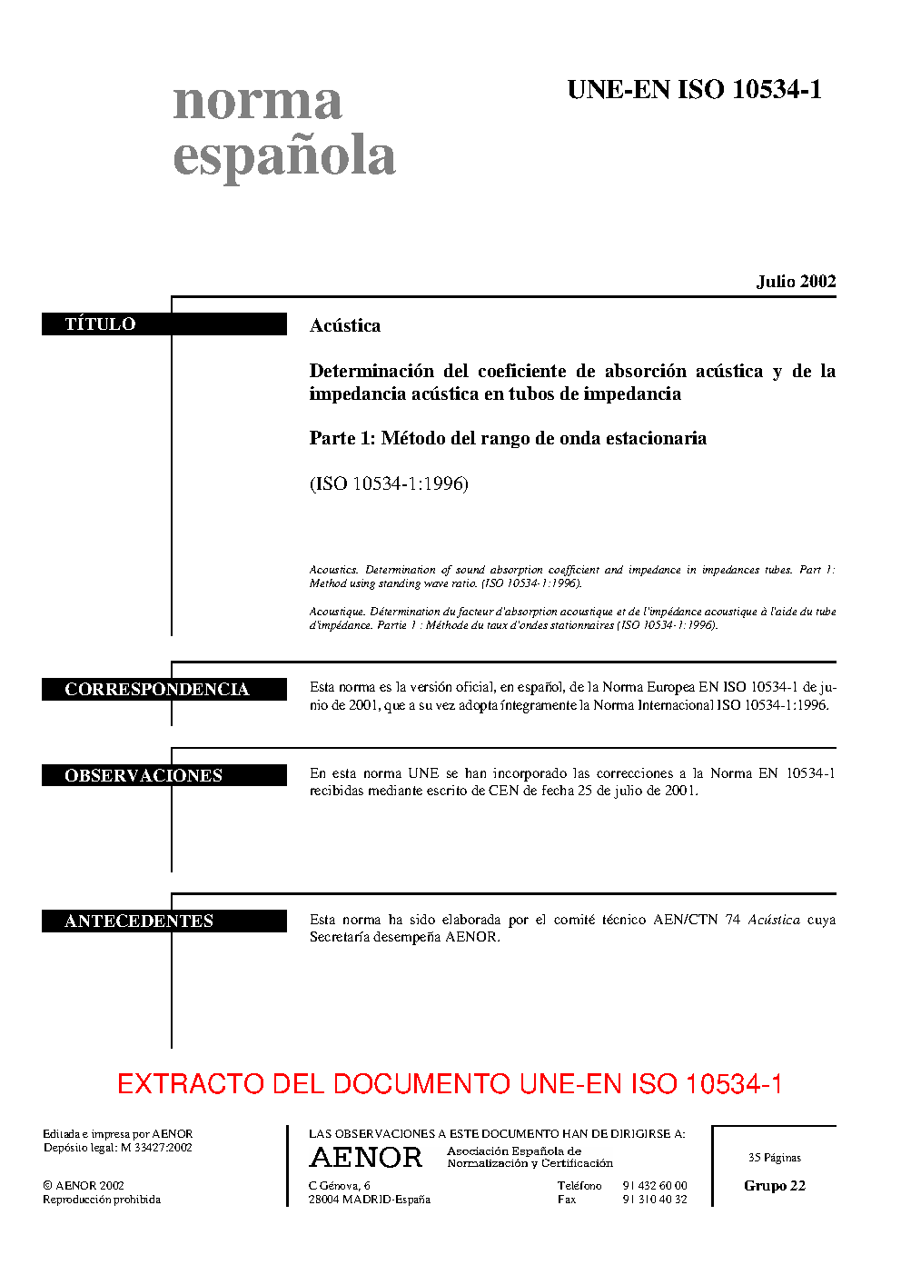 UNE-EN ISO 10534-1:2002