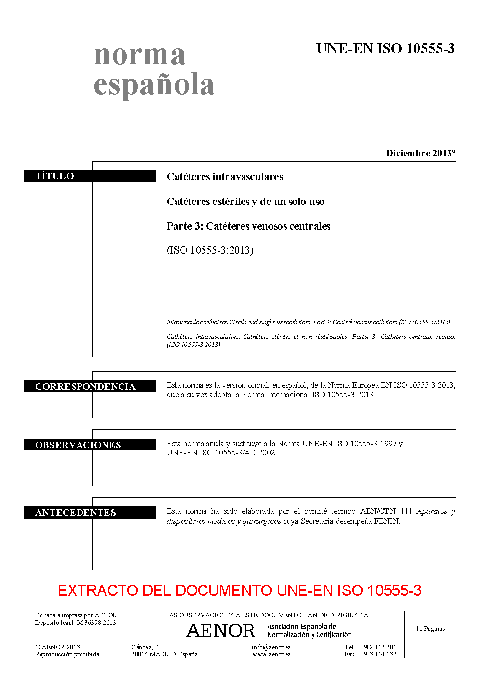 Intravascular catheters - Sterile and single-use catheters - Part 3: Central venous catheters (ISO 10555-3:2013)