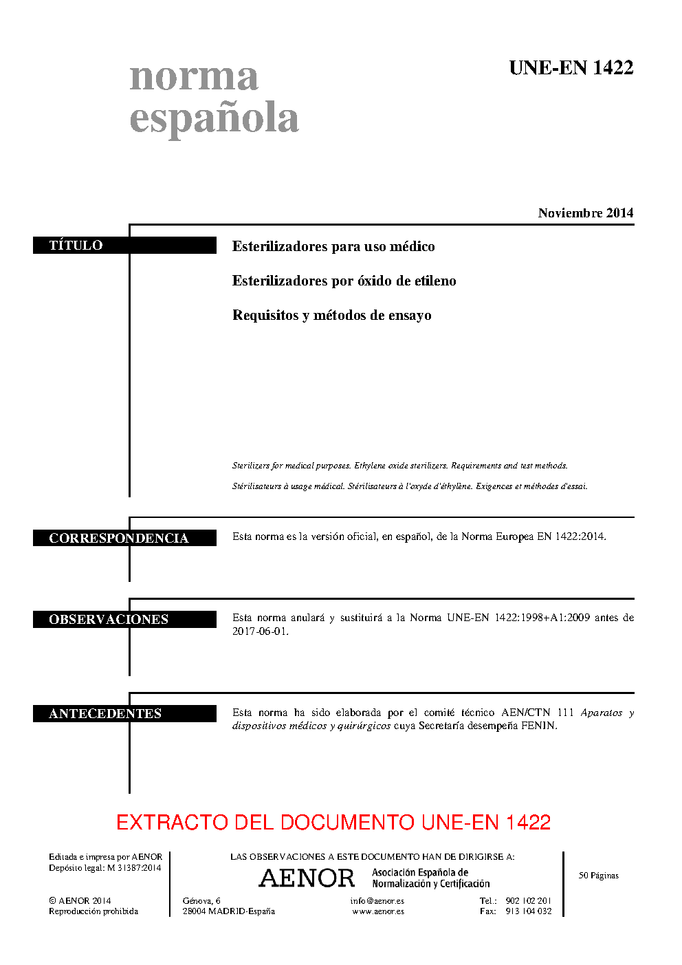 | Publisher | Asociacion Espanola de Normalizacion y Certificacion (AENOR) |
