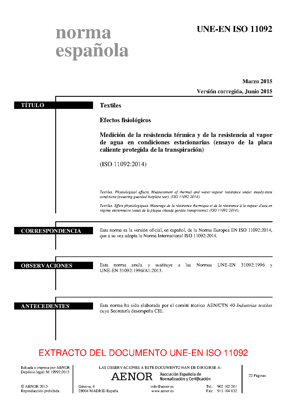 UNE-EN ISO 11092:2015