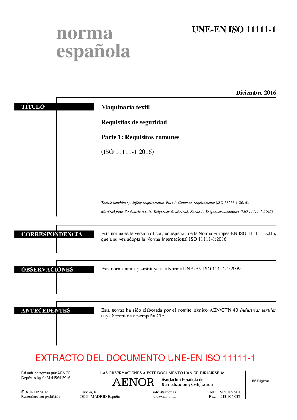 | Publisher | Asociacion Espanola de Normalizacion y Certificacion (AENOR) |