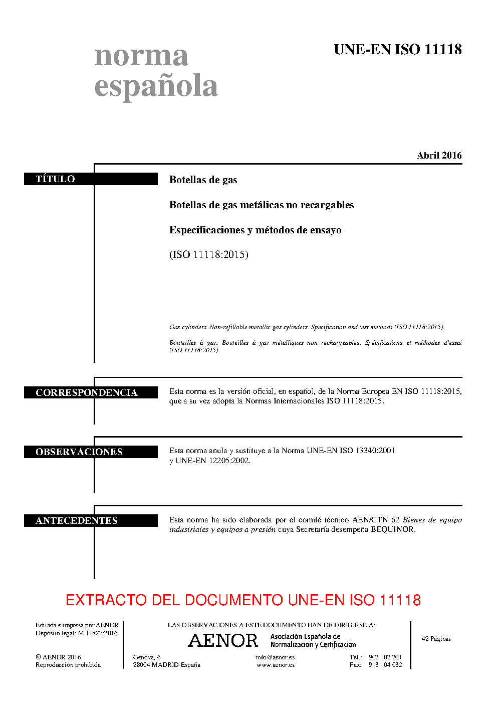 | Publisher | Asociacion Espanola de Normalizacion y Certificacion (AENOR) |
