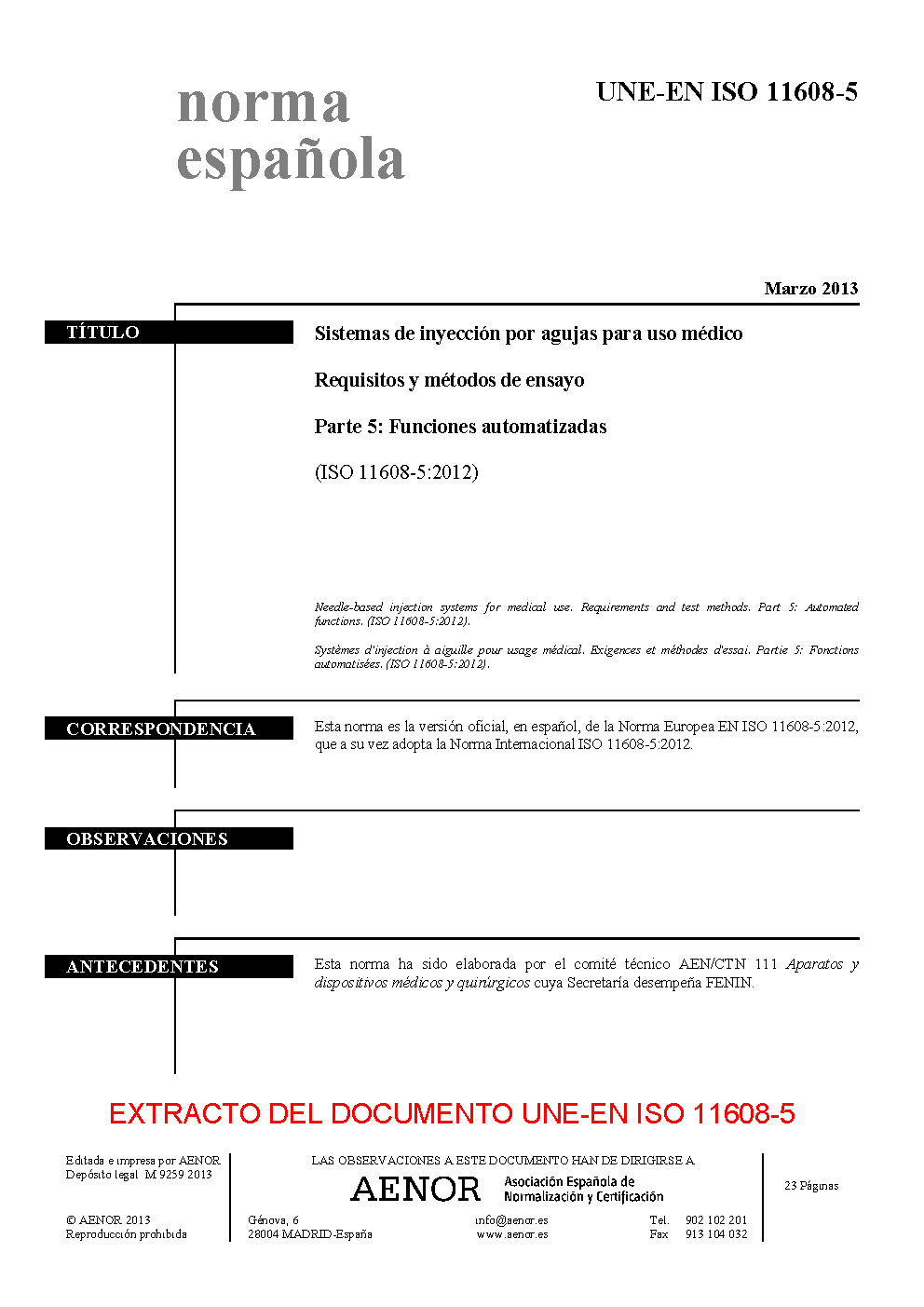 | Publisher | Asociacion Espanola de Normalizacion y Certificacion (AENOR) |