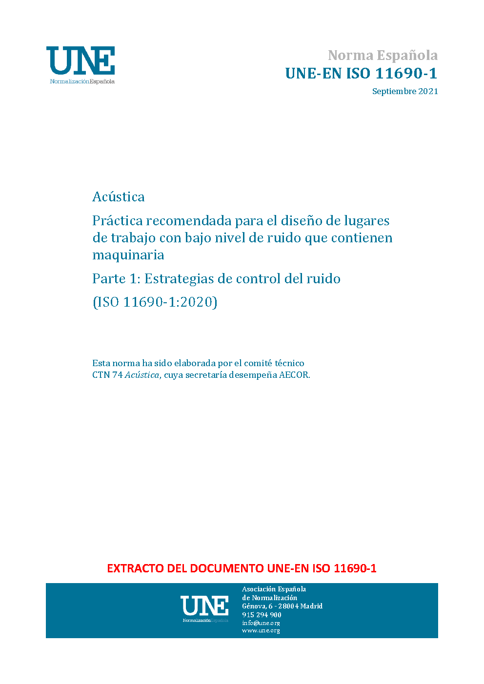 Acoustics - Recommended practice for the design of low-noise workplaces containing machinery - Part 1: Noise control strategies (ISO 11690-1:2020)