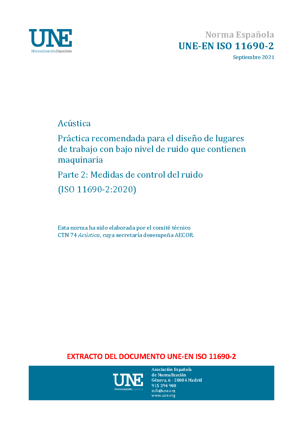 ACOUSTICS. RECOMMENDED PRACTICE FOR THE DESIGN OF LOW-NOISE WORKPLACES CONTAINING MACHINERY. PART 2: NOISE CONTROL MEASURES. (ISO 11690-2:1996).
